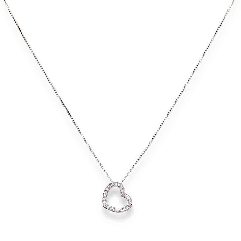 - Geformter und durchbrochener Herzanhänger, verziert mit weißen Zirkonia, Durchmesser 1 cm