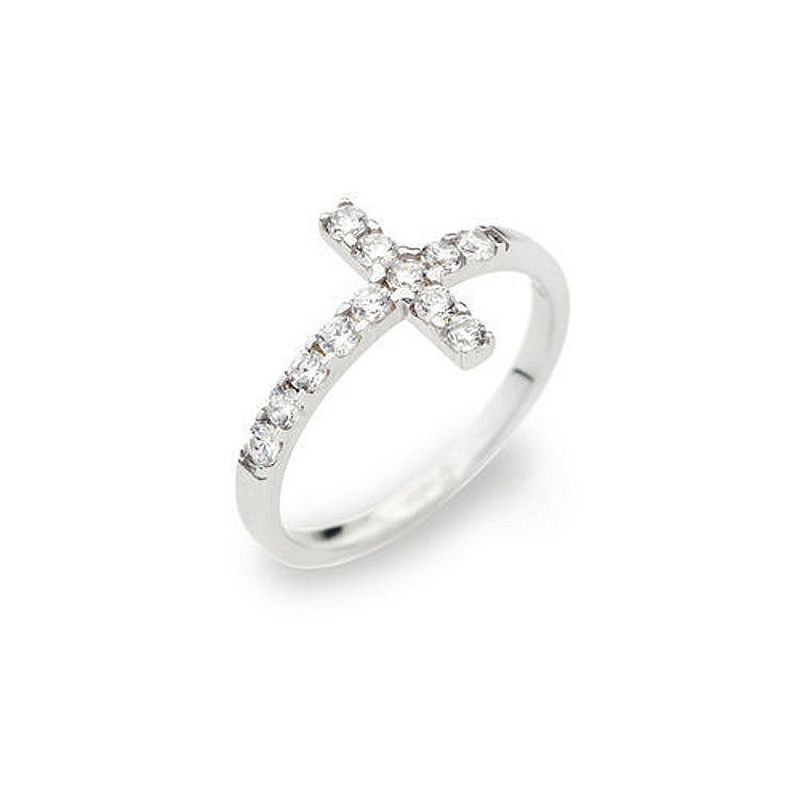 - Motivo de cruz con circonitas blancas engastadas en el diseño