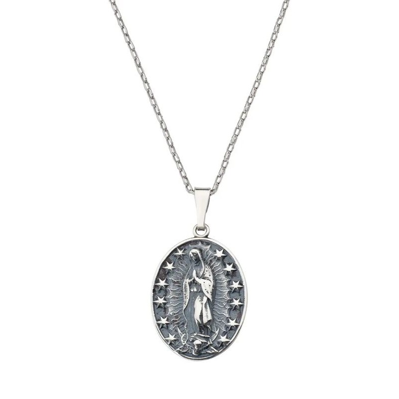 - Colgante sagrado en forma de medalla ovalada con la imagen de la Virgen de Guadalupe, altura 2,5 cm
