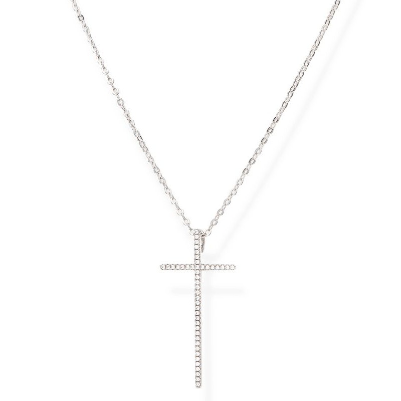 Collar Cruz Amen en plata con circonitas mujer CLLCBBZ - Joyas Amen