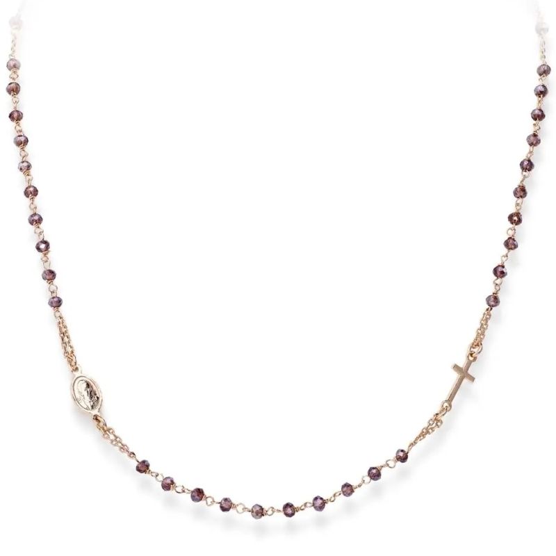 - Un rosario elegante e luminoso, ideale per chi desidera un gioiello di fede moderno, leggero e caratterizzato da intense tonalità viola