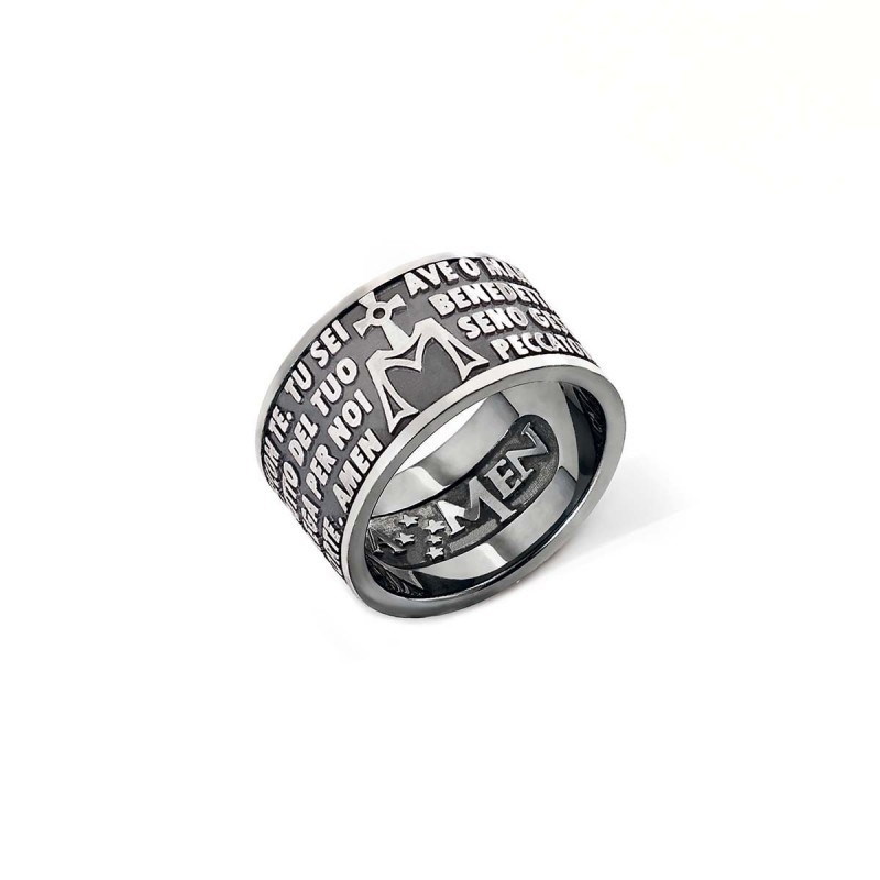 Features of the Amen Hail Mary Prayer Ring in Italian AMB925
